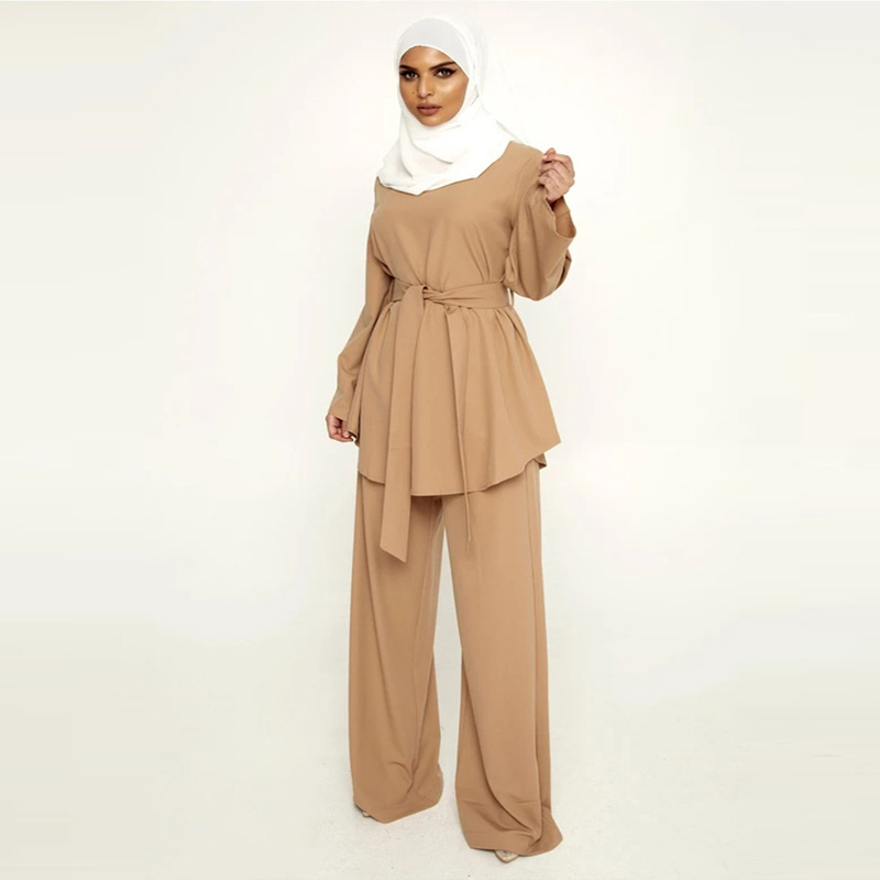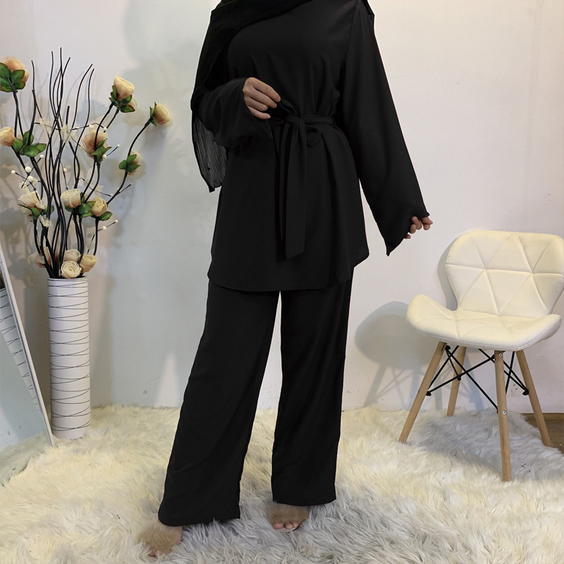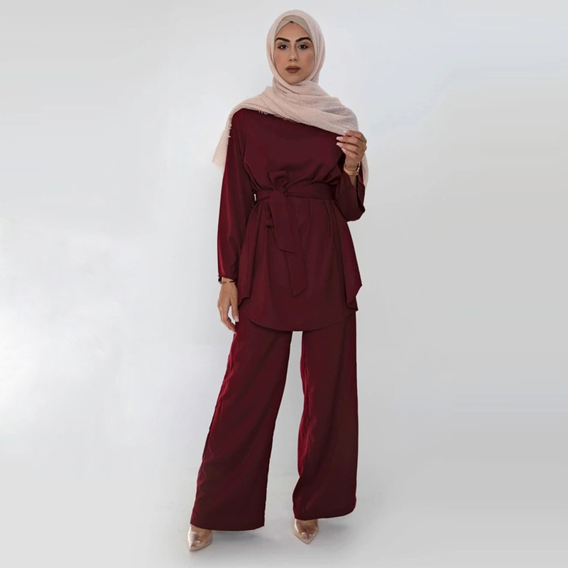 Cross-border Women's Clothing Middle East Muslim Malay Indonesian Suit Fashion Simple Wide Leg Pants Lace Manufacturers In Stock