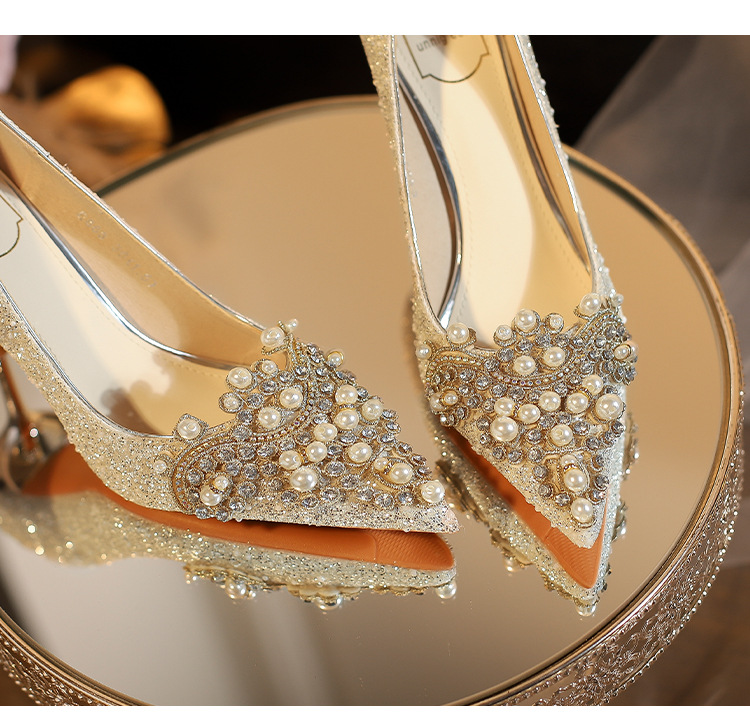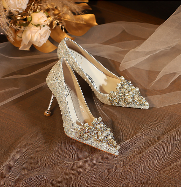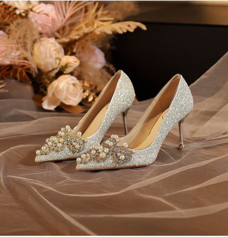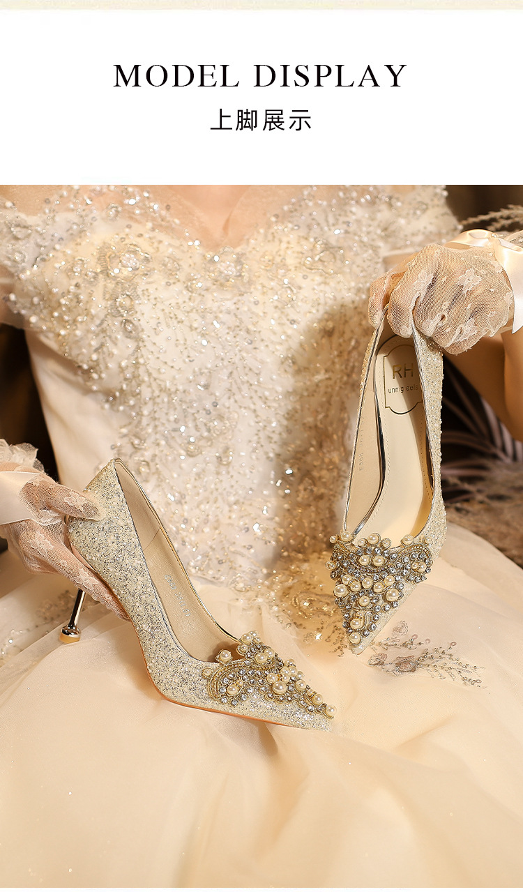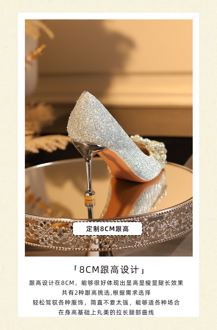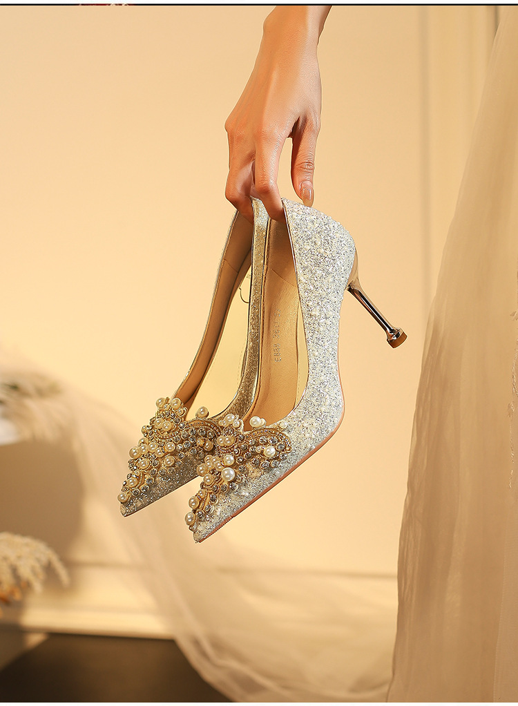 E888-12 Beautiful High Heels New Sequined Wedding Shoes Xiuhe Two Wear Bridal Shoes Fashion Wedding Bridesmaid Shoes