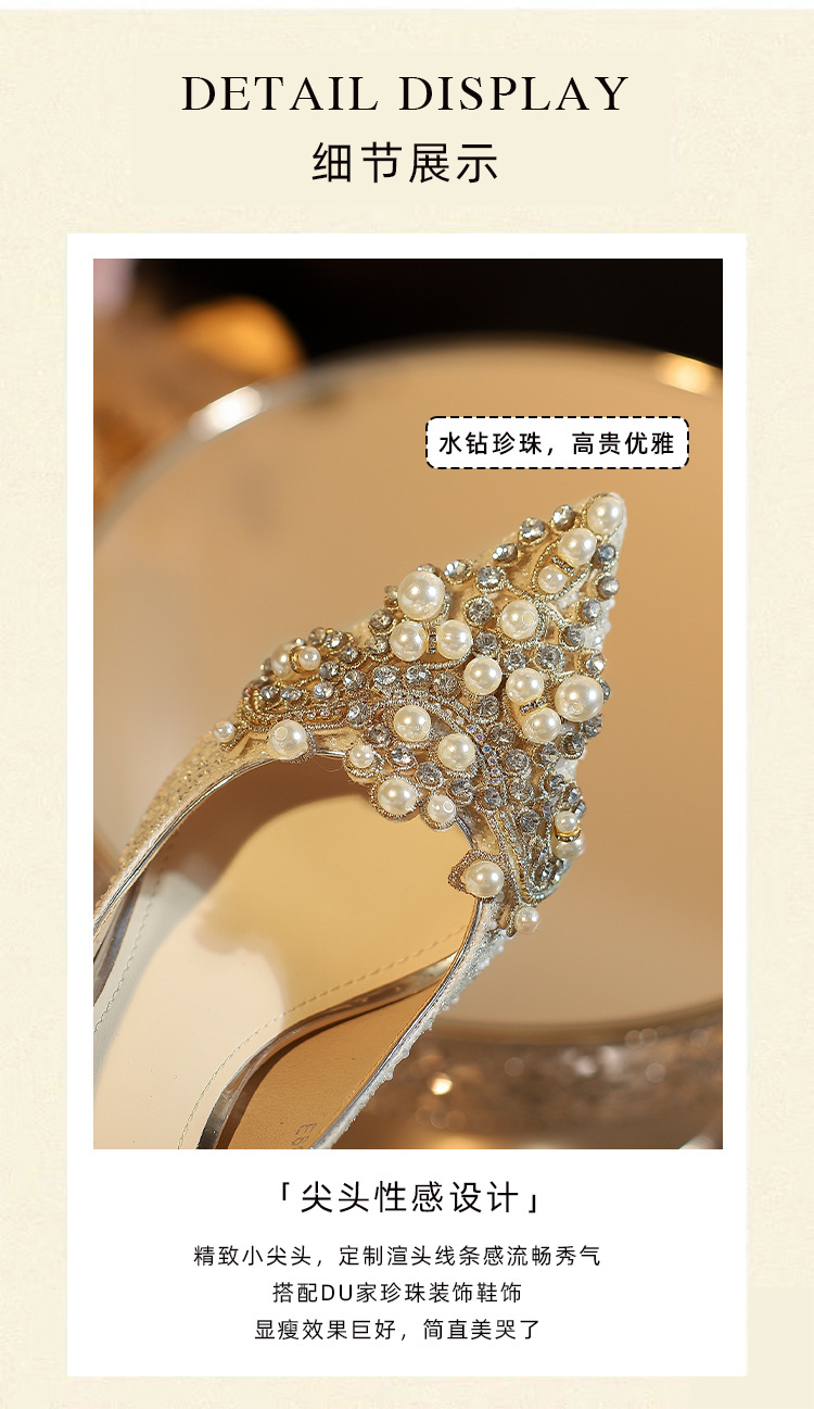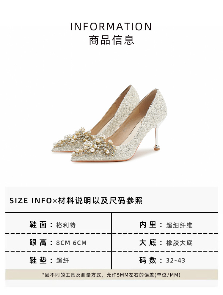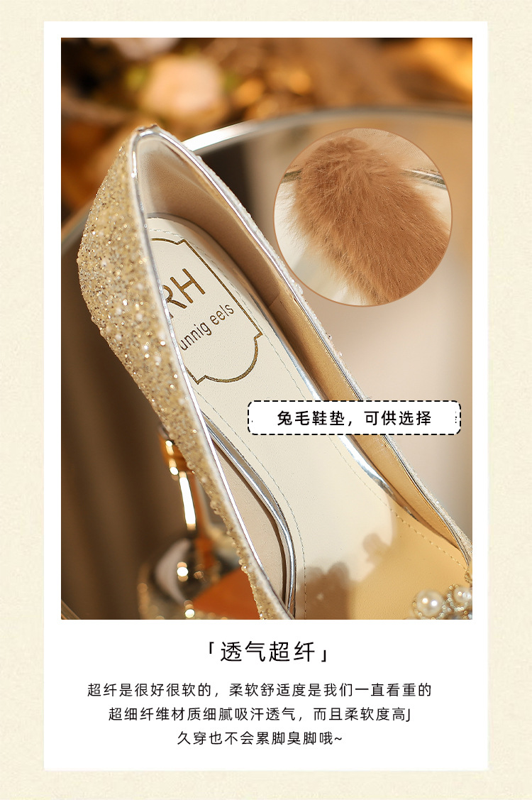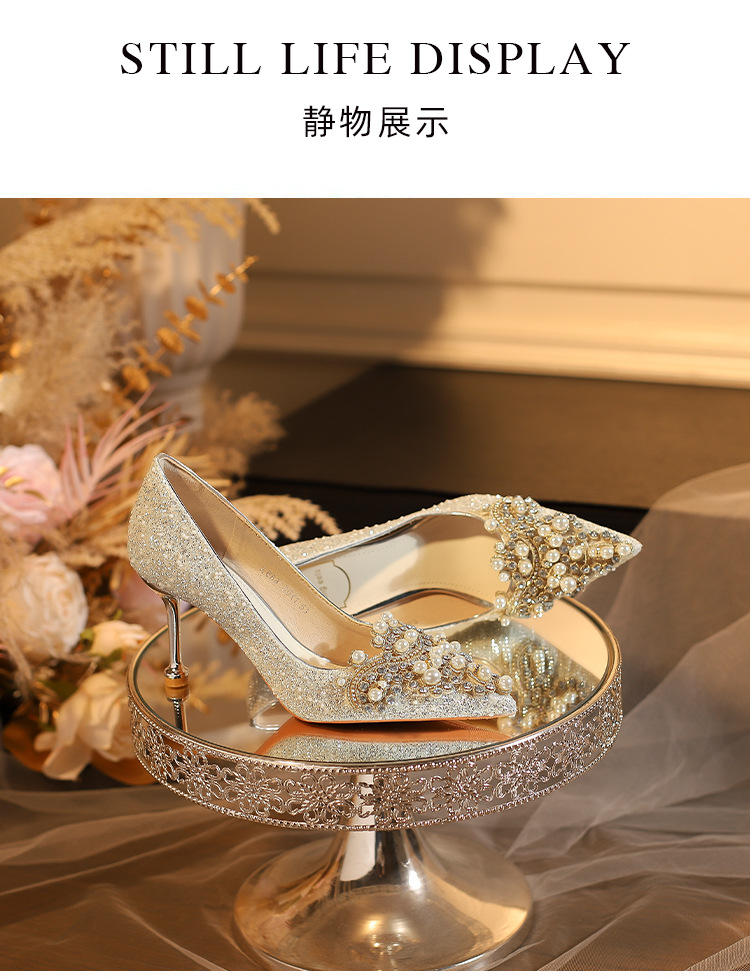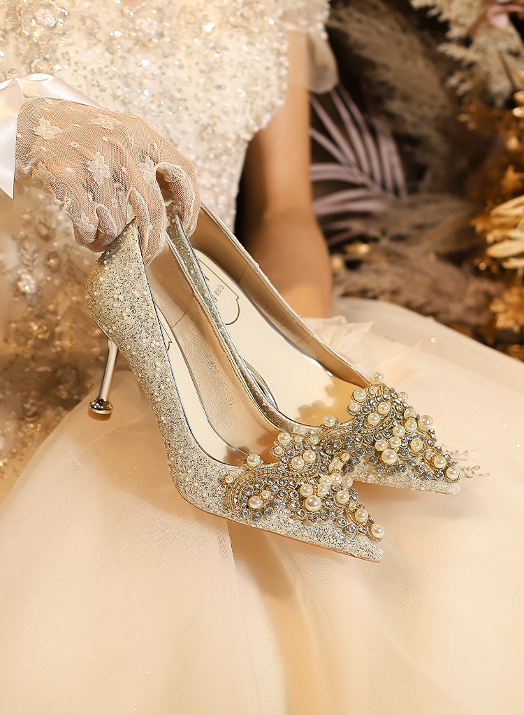 E888-12 Beautiful High Heels New Sequined Wedding Shoes Xiuhe Two Wear Bridal Shoes Fashion Wedding Bridesmaid Shoes