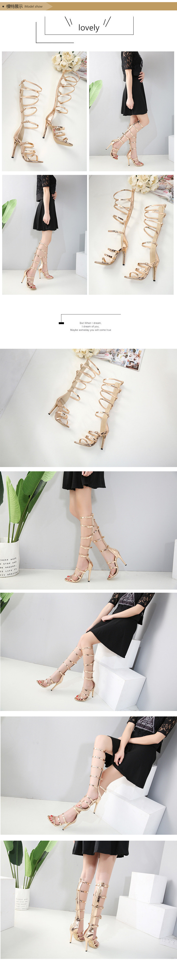 Ladies Shoes Foreign Trade Europe And The United States Sexy High Heels High-heeled Stiletto Sandals Hollow Thin Belt High-top Women's Sandals