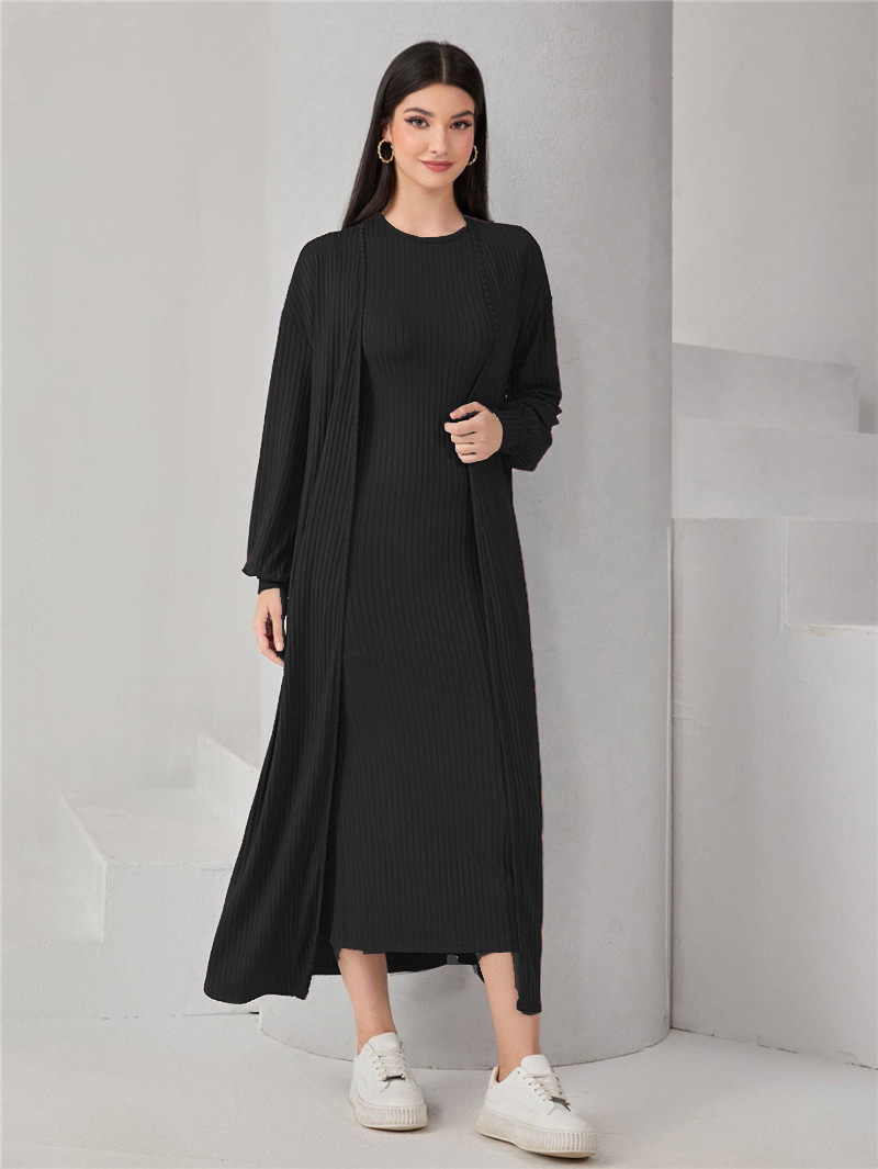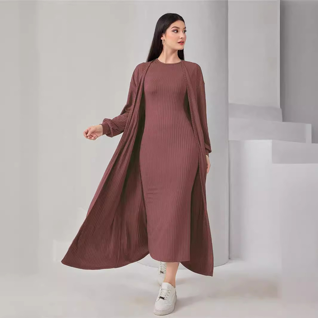 Middle East Arab Muslim Women's Dress Two-piece European And American Tank Top Cardigan Outerwear Pit Suit
