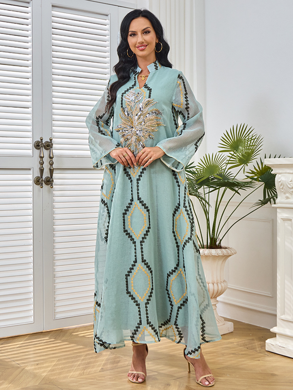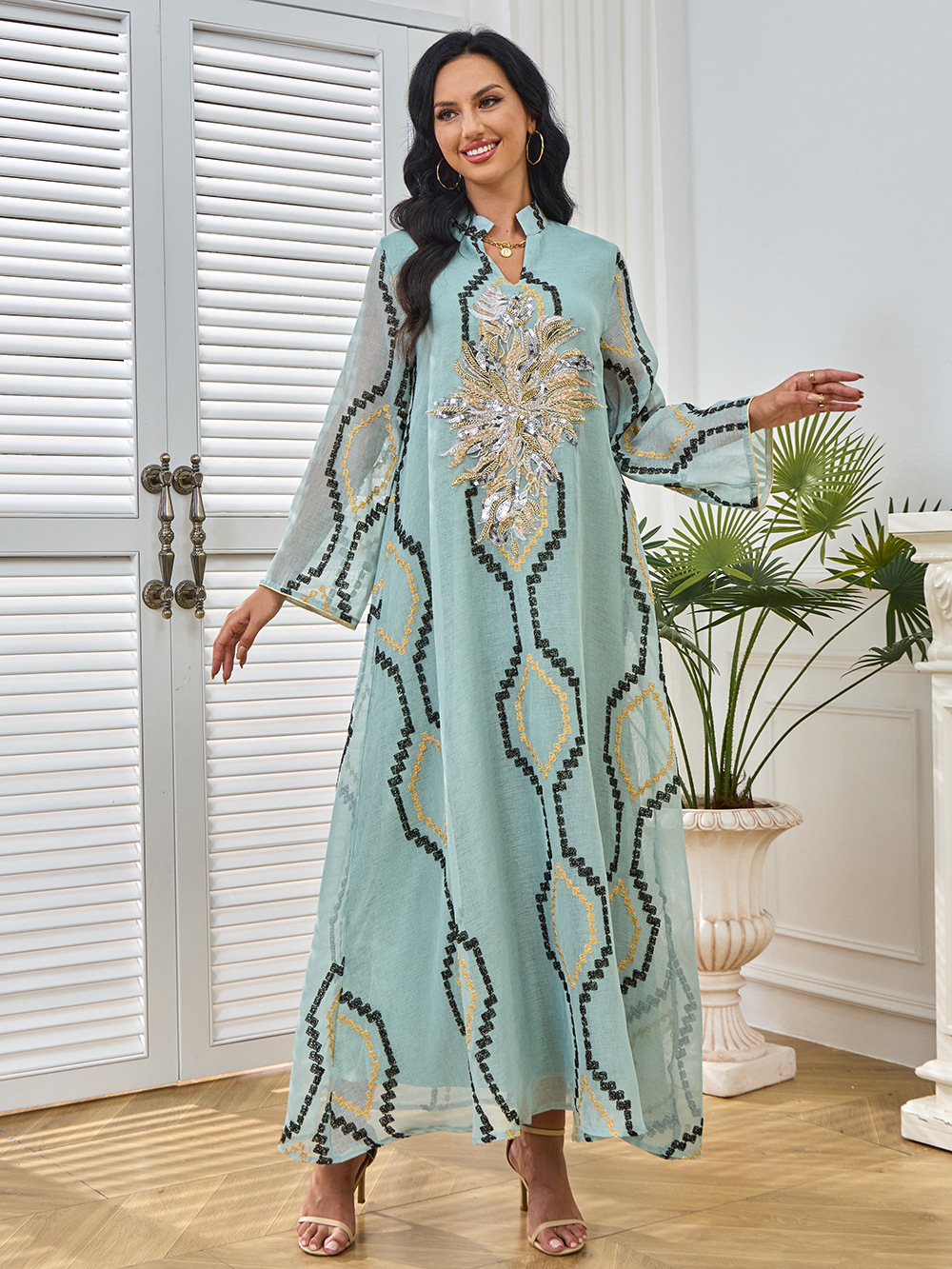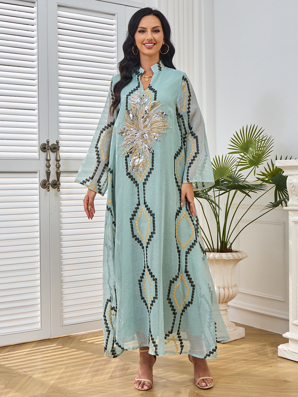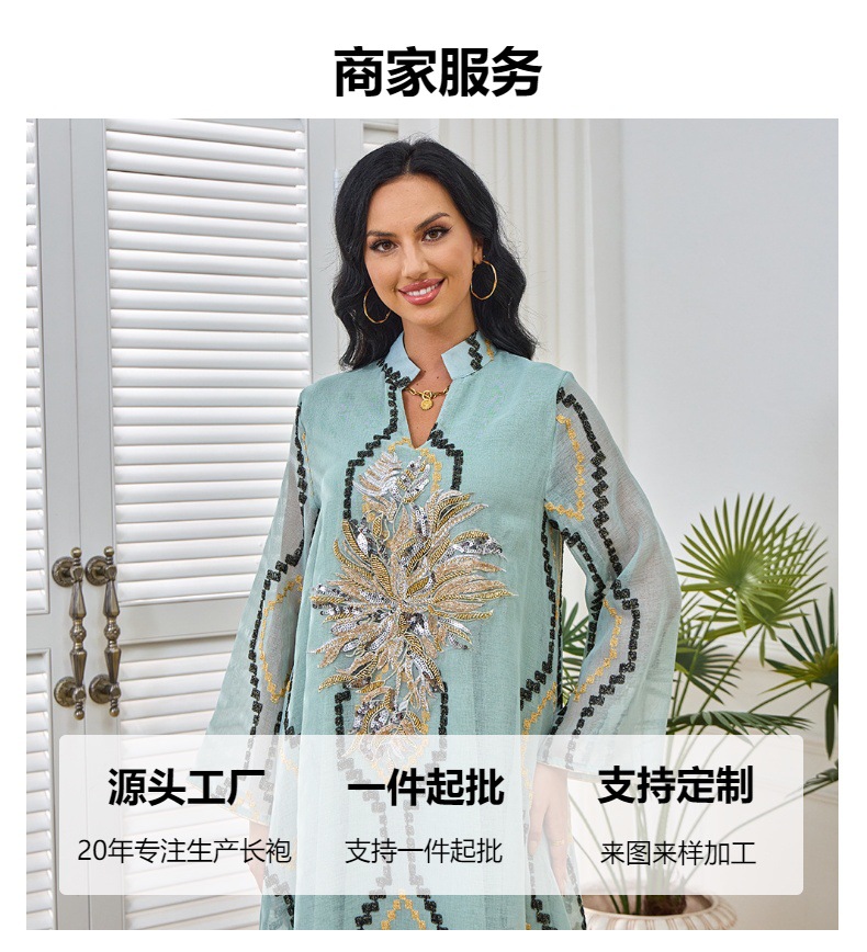 MT223 Middle East New Collar Sequin Dress Light Luxury Socialite Party Dress Muslim Abaya Cross Border Women