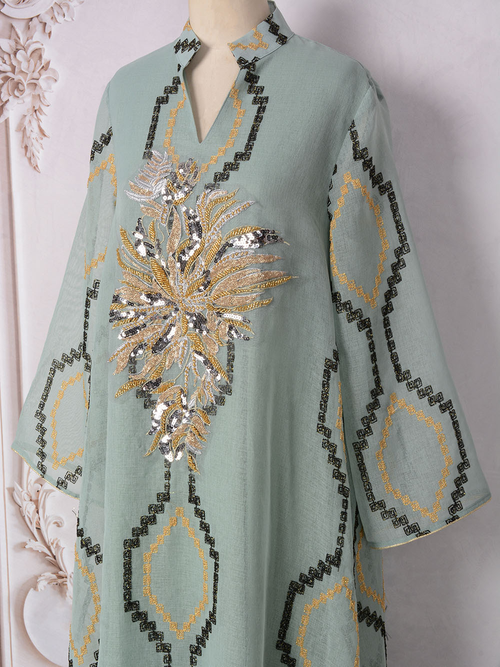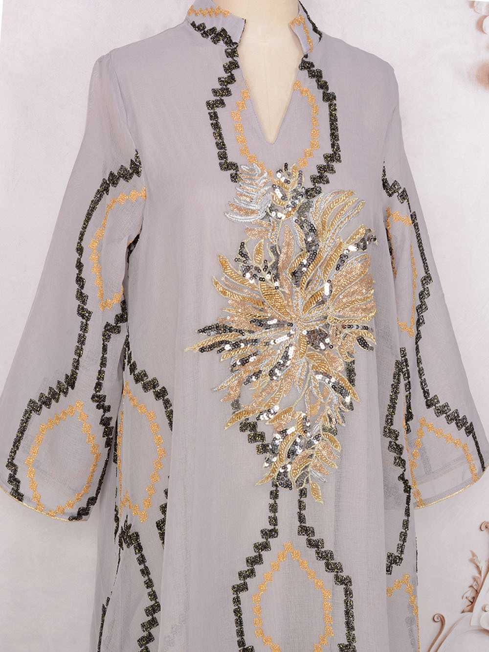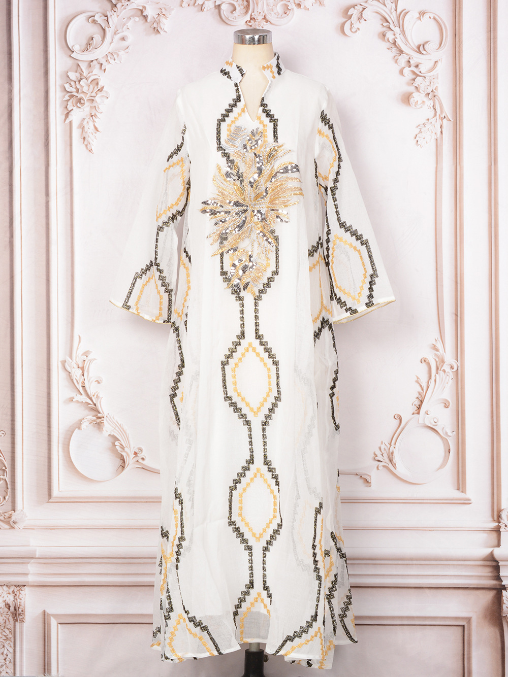 MT223 Middle East New Collar Sequin Dress Light Luxury Socialite Party Dress Muslim Abaya Cross Border Women